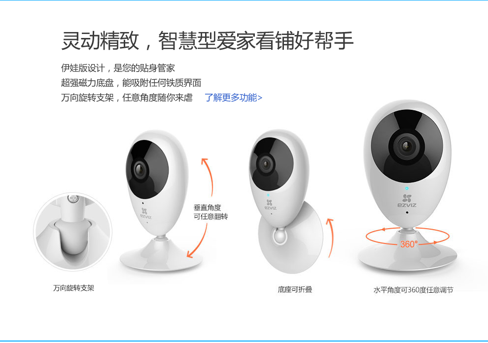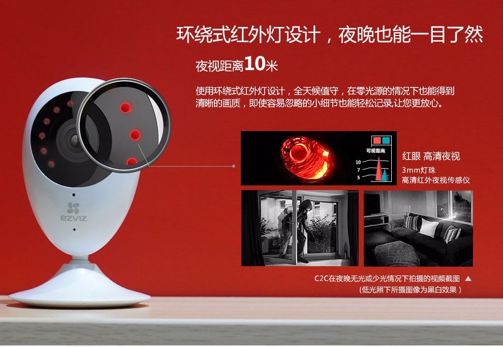 ???螢石高清家用網(wǎng)絡(luò)攝像機,200萬像素,1080P高清分辨率,畫質(zhì)清晰,成像效果一流;高清廣角視角,輕松覆蓋每個角落,;紅外高清夜視效果翻蓋范圍達10米,再也不用擔心夜晚看不清的尷尬。